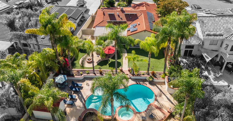 Designed for entertaining, the backyard feels like a private oasis. A sparkling pool and spa—equipped with new heater and new pump—invite you to unwind under the palms, while the built-in outdoor kitchen with BBQ island, warming tray, and bar seating makes hosting effortless. Evenings can be spent gathered around the cozy in ground fire pit, while enjoying the easy indoor-outdoor flow that defines California living. Energy-efficient features include PAID OFF SOLAR PANELS and NEW whole house reverse osmosis water system, ensuring sustainable comfort year-round. The attached two-car garage offers epoxy floors, built-in cabinets, a workshop area, plus tons of storage space both inside and out.